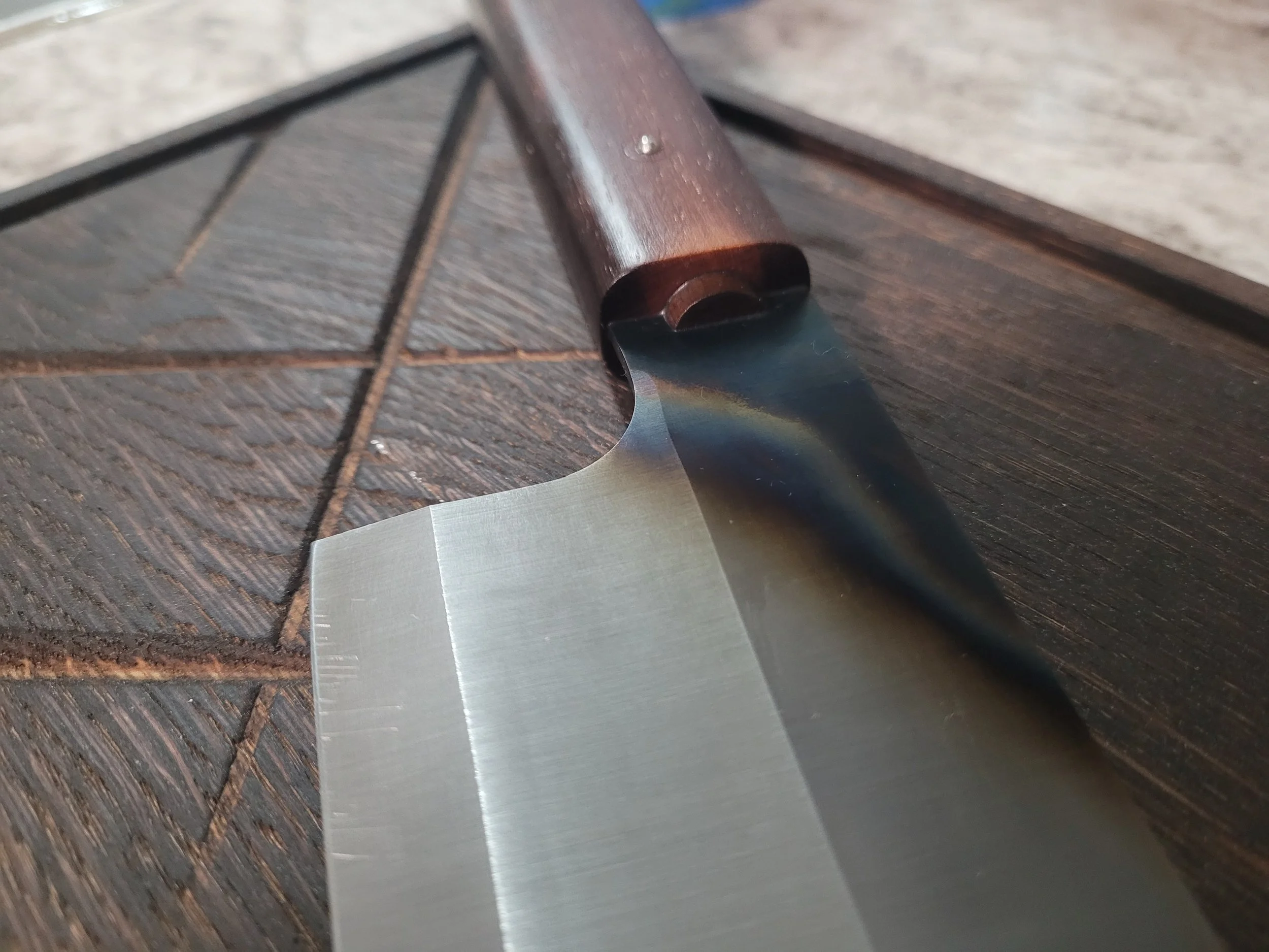 Giraffe Bone Bowie Paring Knife Carbon Steel Nakiri Dyed Burl Chef Knife Ebony Chef Knife Etched Fillet Knife Ebony Nakiri Rosewood Chef Knife Stacked Leather Handled Bowie