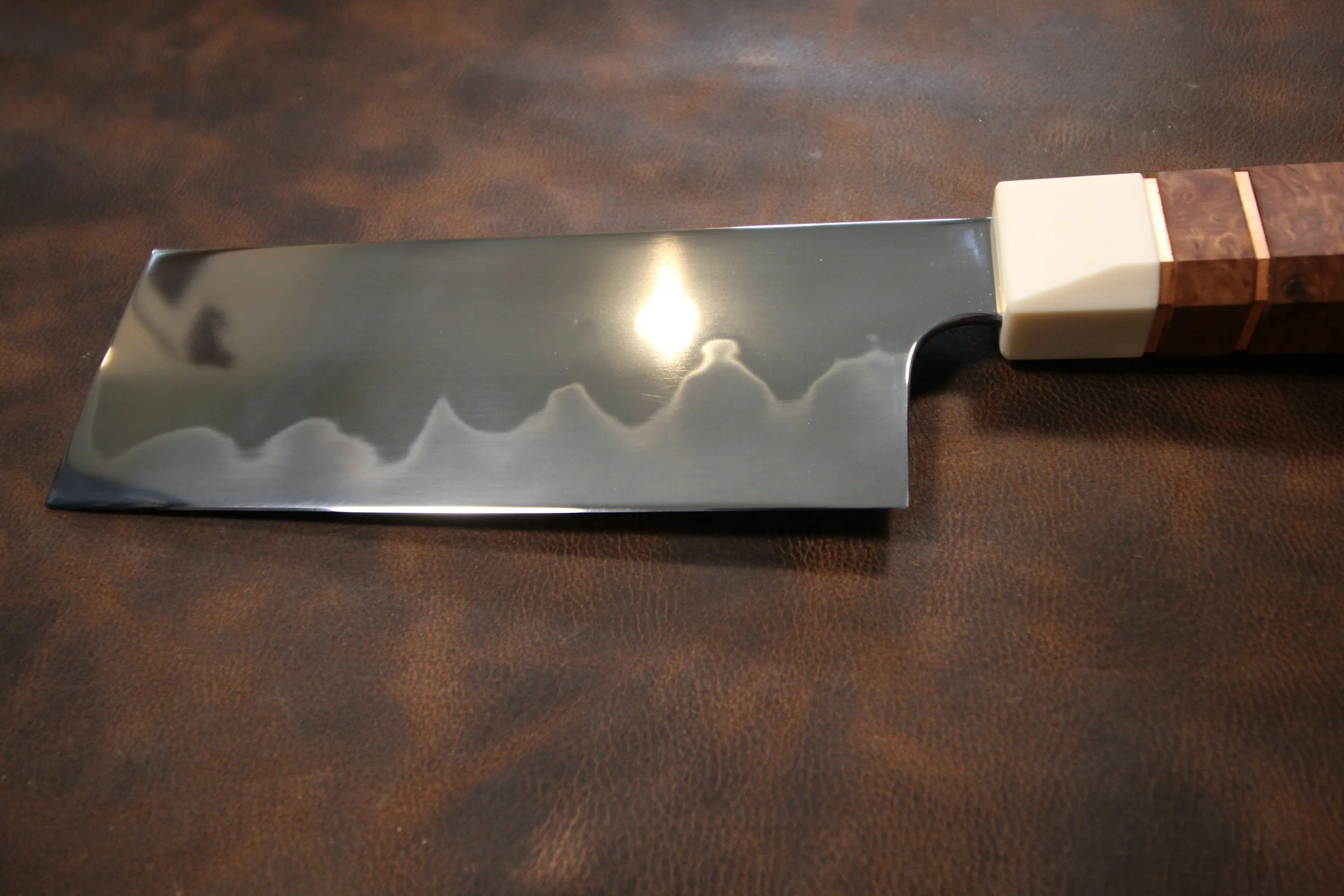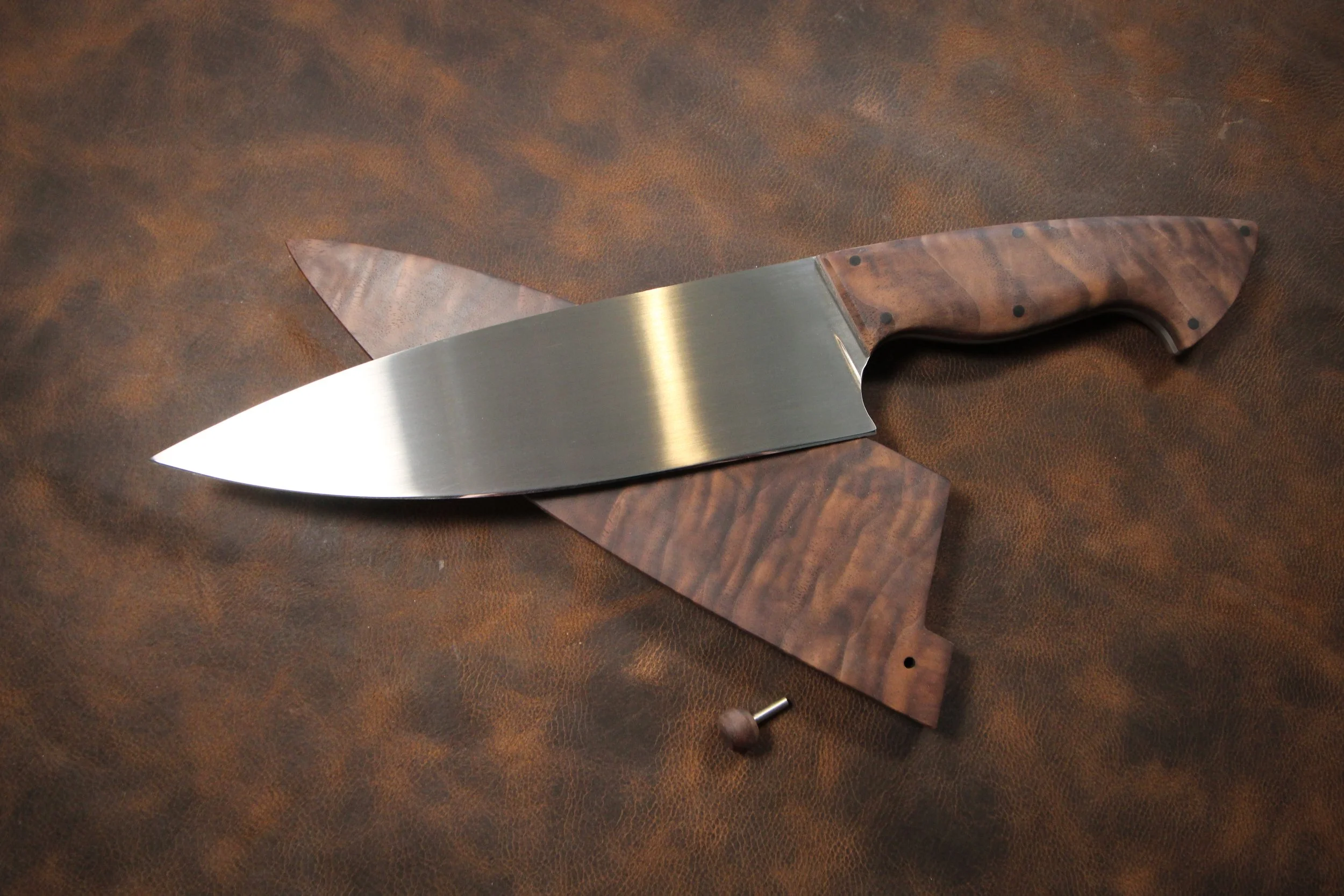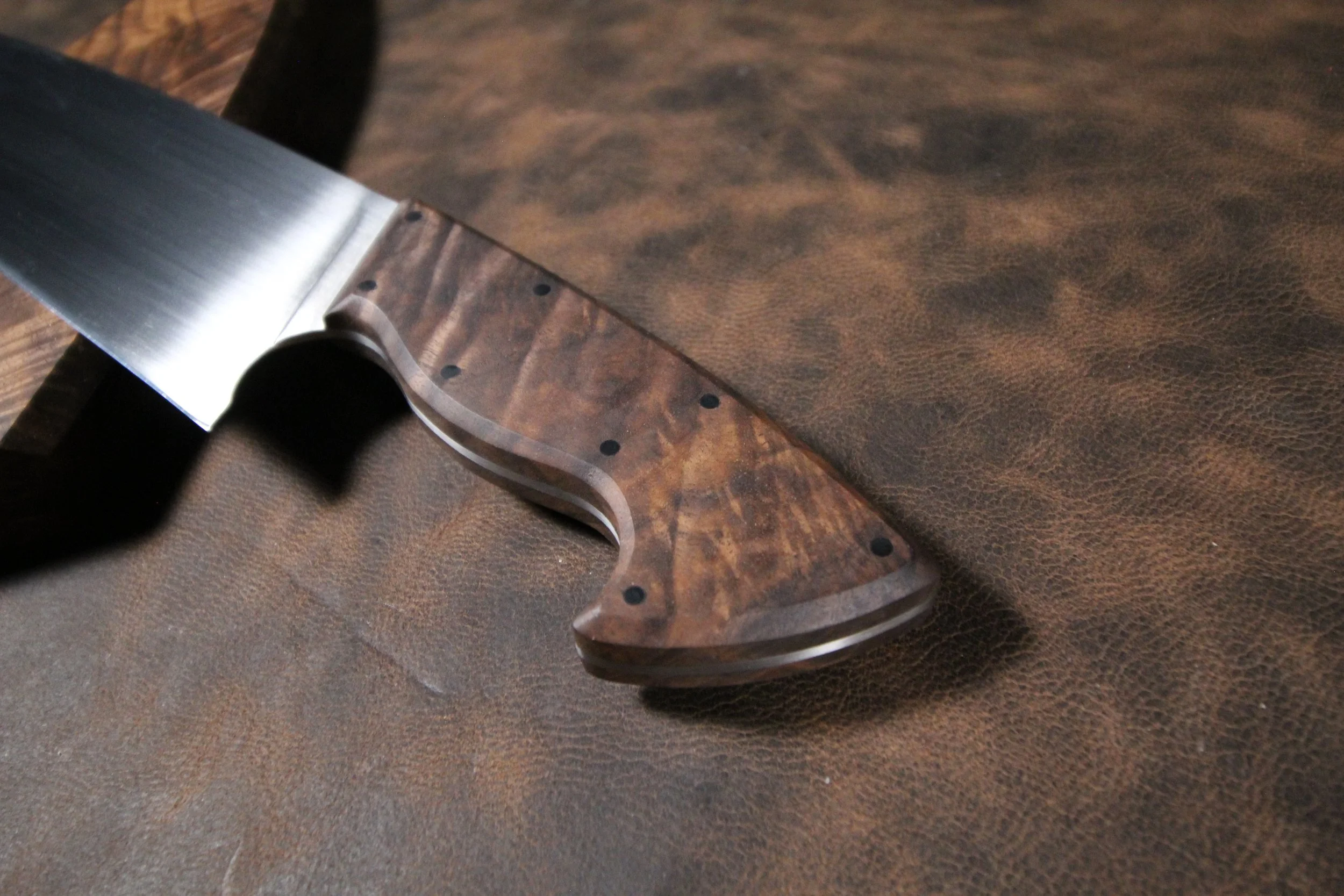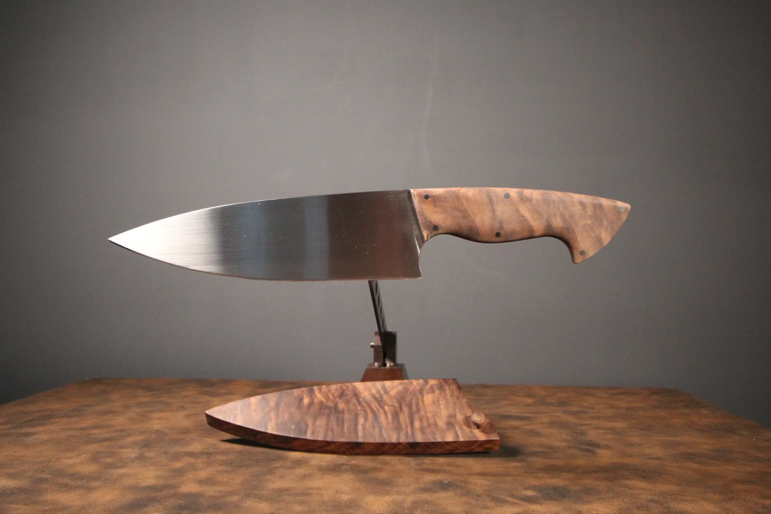 Available Knives 10" Integral Chef Knife $400.00 5" Mallee Burl Hunter $300.00 Sold out 7" Walnut Fillet $200.00 9.5" Walnut Chef Knife $300.00 7" Petty with Hamon $250.00 7" Petty with hamon $250.00 8" Walnut Chef $200.00 6" Nakiri with Hamon $350.00 8" Gyuto with Hamon $350.00 8" Gyuto with Hamon $350.00 Walnut Chef Knife $350.00 Mallee Burl Chef $300.00 8" Chef Knife $250.00