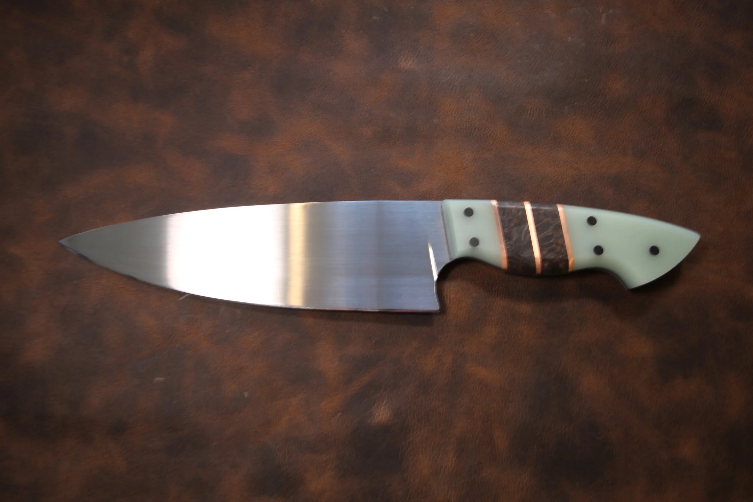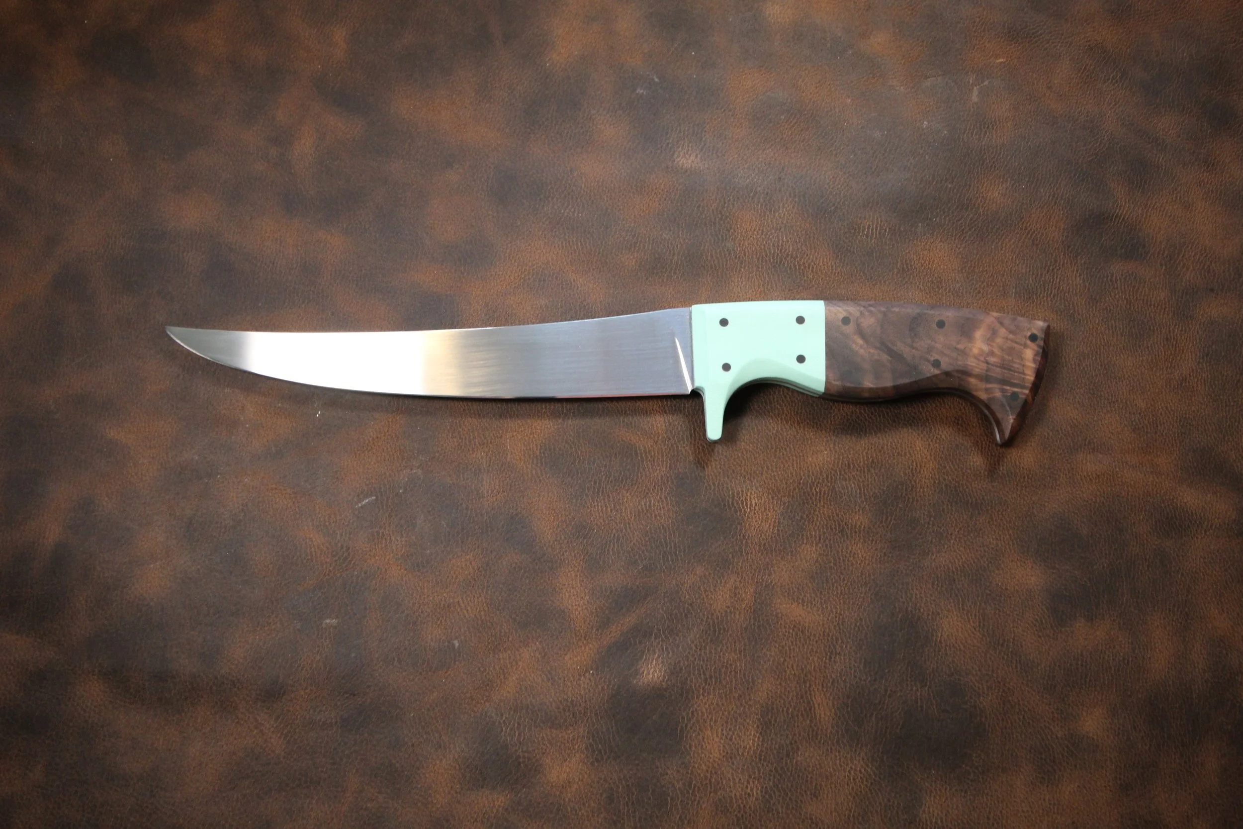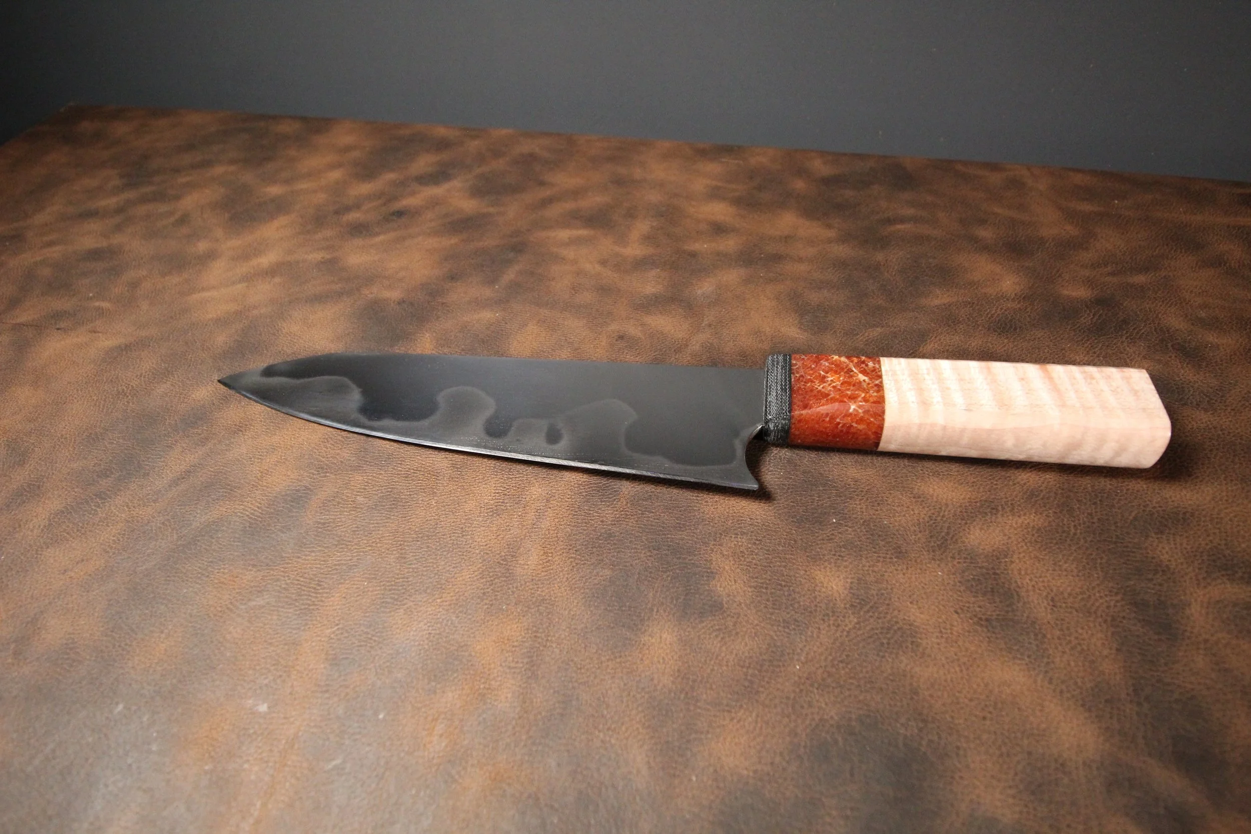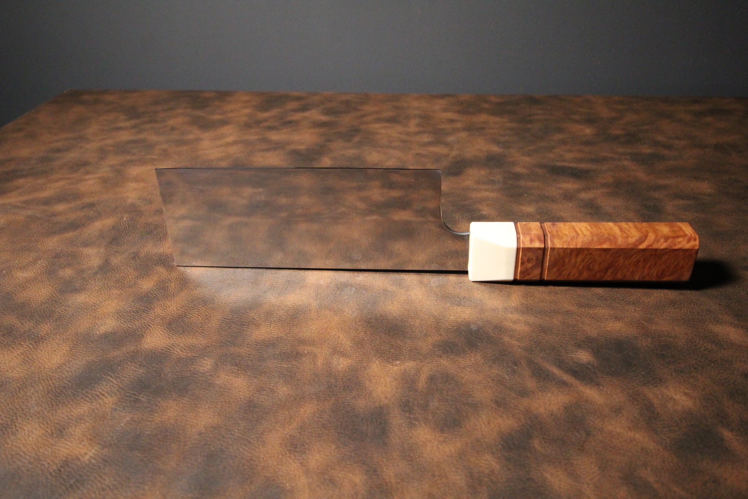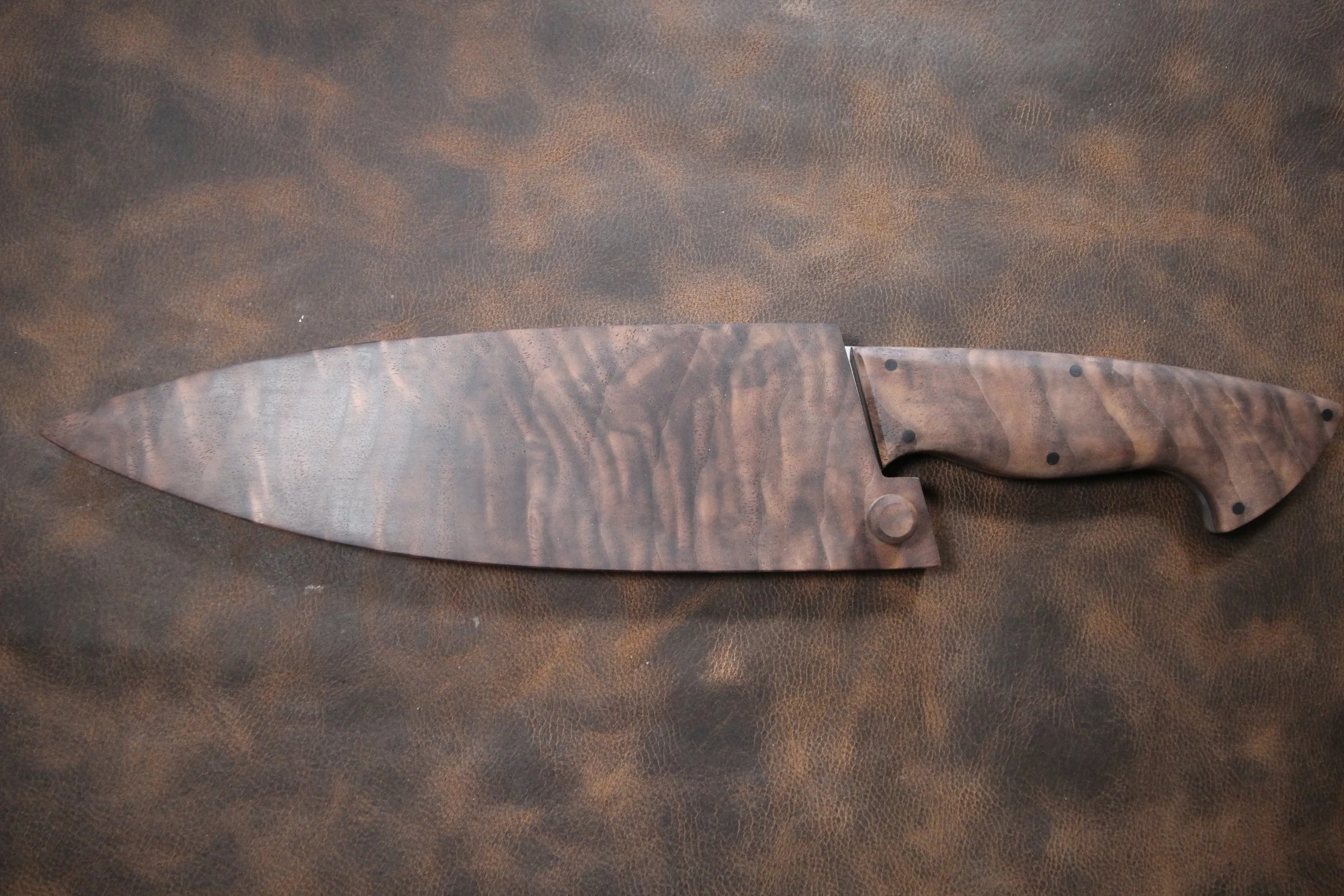 Available Knives 10" Integral Chef Knife $400.00 5" Mallee Burl Hunter $300.00 Sold out 7" Walnut Fillet $200.00 9.5" Walnut Chef Knife $300.00 7" Petty with Hamon $250.00 7" Petty with hamon $250.00 8" Walnut Chef $200.00 6" Nakiri with Hamon $350.00 8" Gyuto with Hamon $350.00 8" Gyuto with Hamon $350.00 Walnut Chef Knife $350.00 Mallee Burl Chef $300.00 8" Chef Knife $250.00
